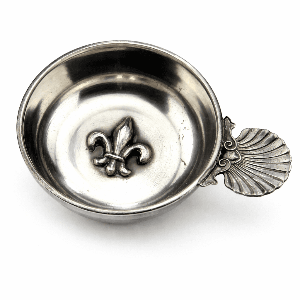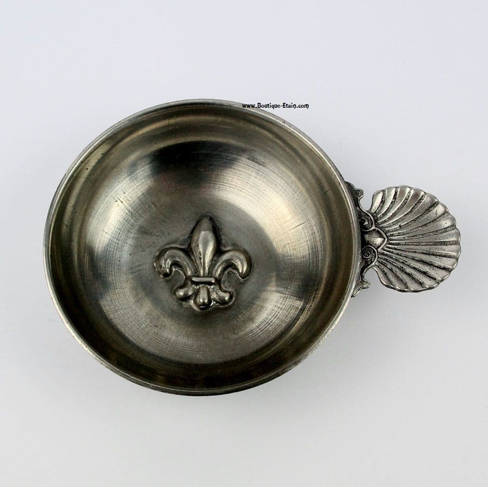 Tastevin ou teste-vin en étain motif fleur de lys .